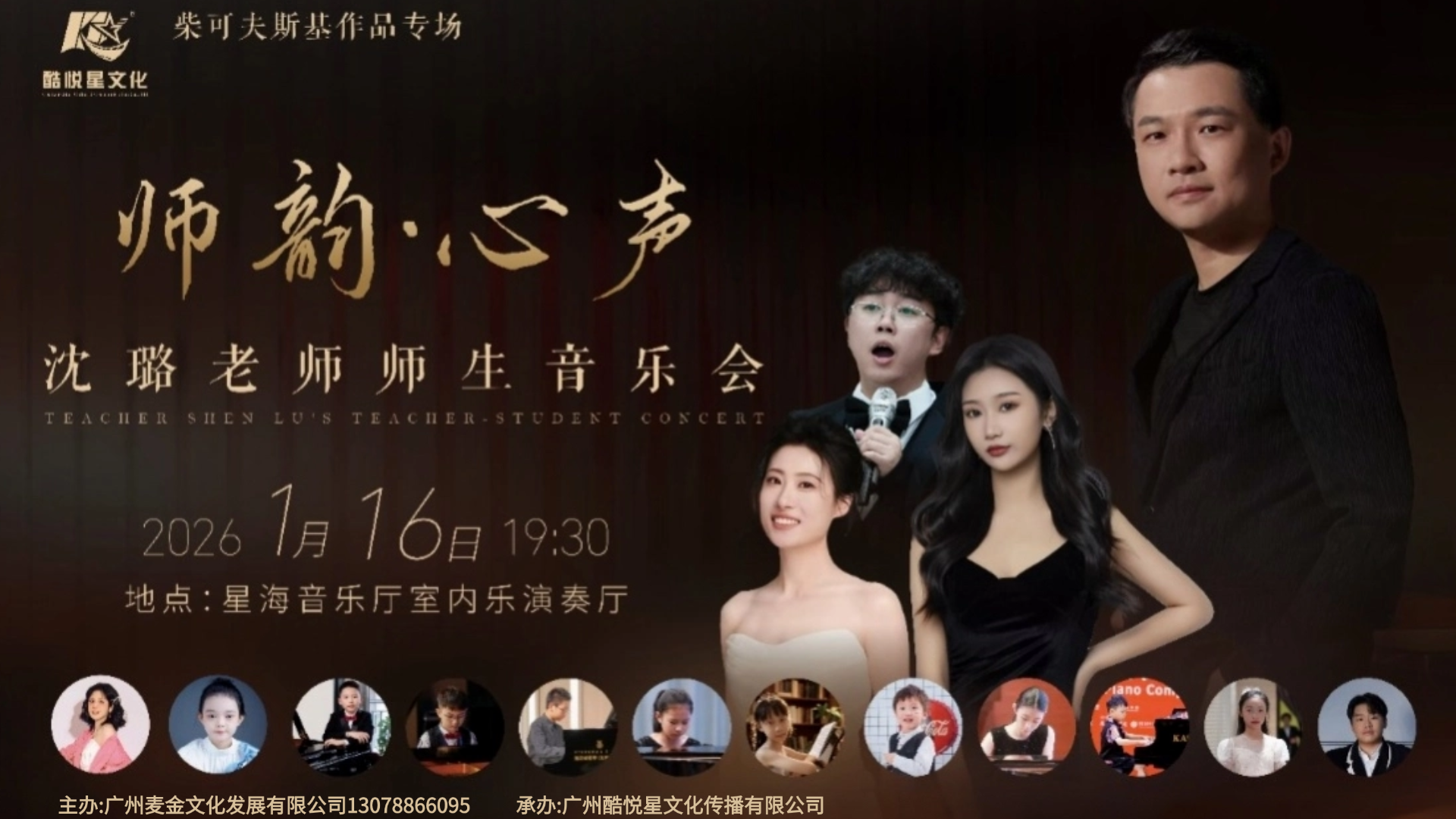 2026年1月16日,“师韵·心声——沈璐老师师生音乐会”将于星海音乐厅优雅启幕。本场音乐会以“传承与绽放”为核心,汇聚钢琴家沈璐及其优秀学生,通过钢琴独奏、重奏与声乐合作的形式,呈现一场古典与现代交融、师生情感共鸣的音乐之旅。音乐会曲目涵盖俄罗斯浪漫主义经典与柴可夫斯基经典舞剧选段,既有深邃的艺术表达,亦有绚烂的舞台表演,旨在展现师生之间技艺的传递与艺术精神的延续。